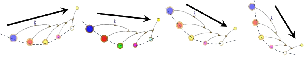 Orientations that follow a fractal, or Fibonacci – like sequence, where each branch-arm that is added progressively moves the center-of-gravity of the tier – is called an Articulator. Its movements remind one of a tail wagging back and forth. It undulates in the wind with a smooth, serpentine fashion.