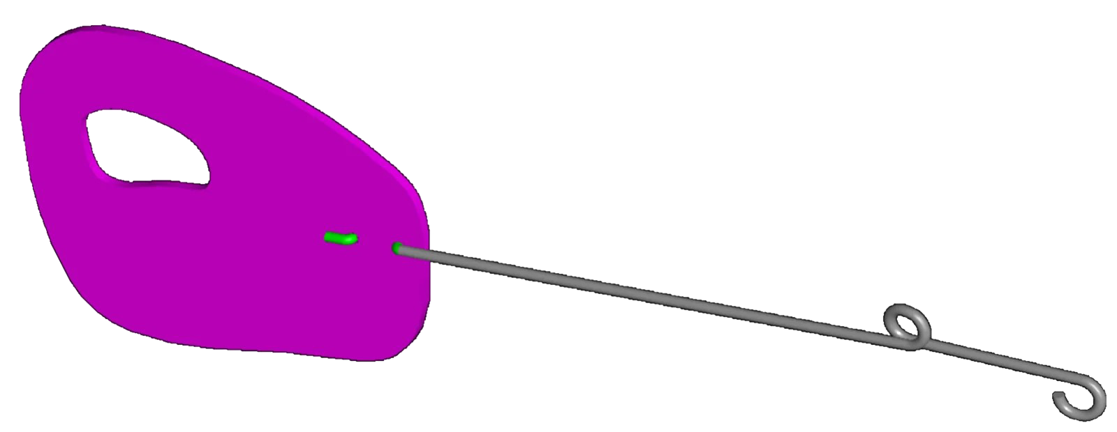 It’s a spring with an off-axis loop in the middle and flying leads for adjustment. Once the arm/optic are properly balanced, the flying leads are clipped off, leaving a visually aesthetic branch arm. This has proven to be a successful manufacturing method.