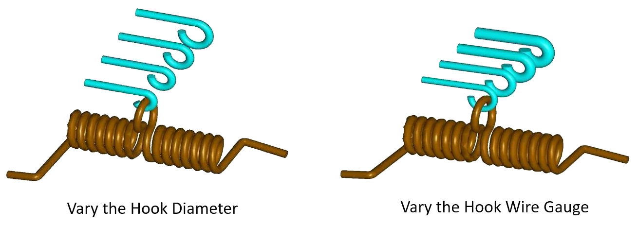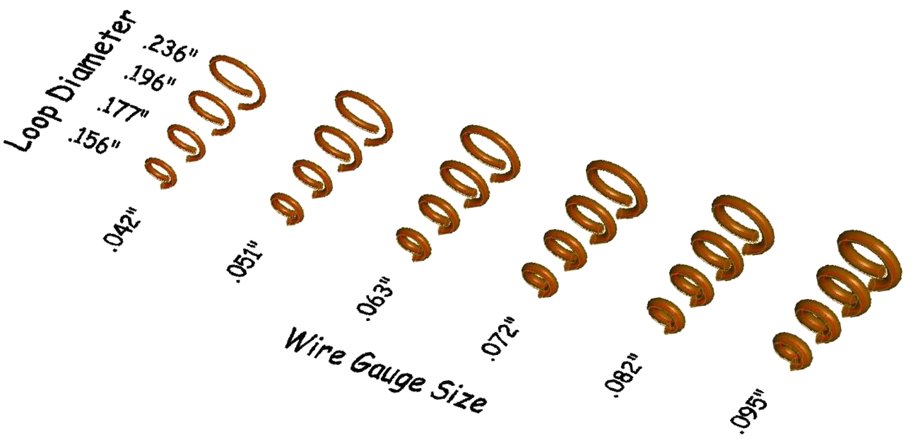 The renditions below show how hook diameter and wire gauge size can affect dynamics.