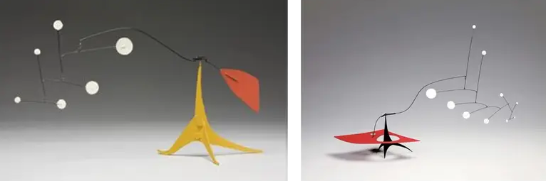 My interpretation of Calders’ evolution into standing mobiles is that he understood the necessity of establishing a low Cg and building off of that initial foundation for extension tiers and appendages. Often, he would make the low mass a large horizontal plate with an aperture to feed the main support through – which is a clever technique for keeping the footprint of the piece small.